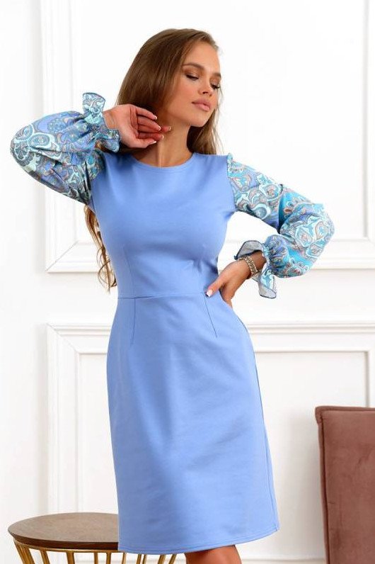 Голубое платье с белоснежным воротником.
