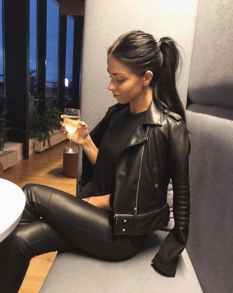 Валерия Шкирандо в кожаной юбке.
