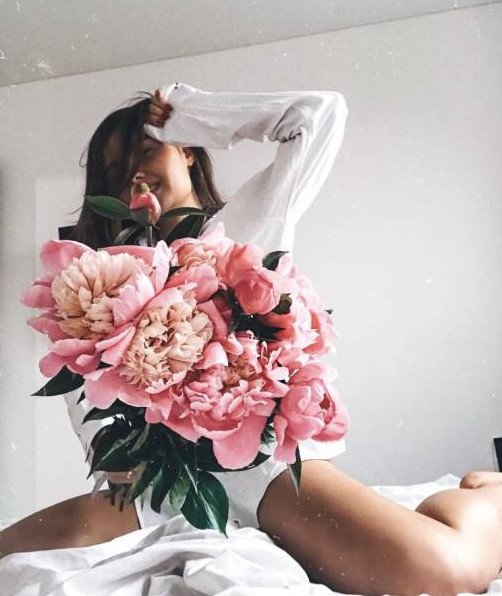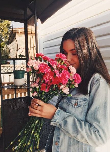 Девушка с букетом из инстаграма.