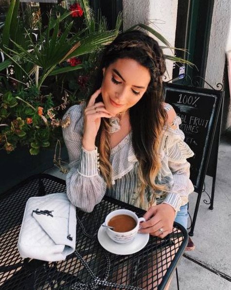 Девушка пьет кофе.