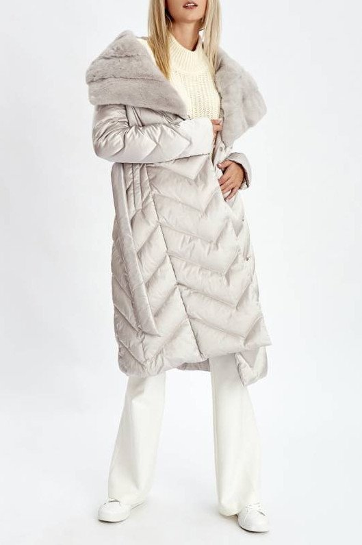 Стеганое пальто с мехом.