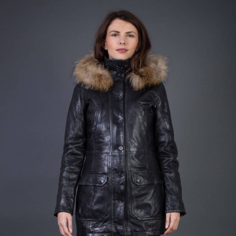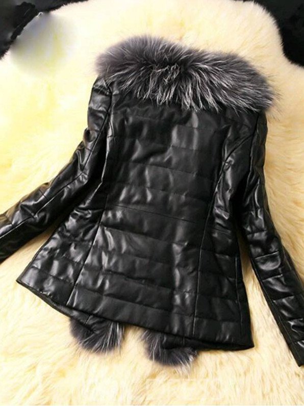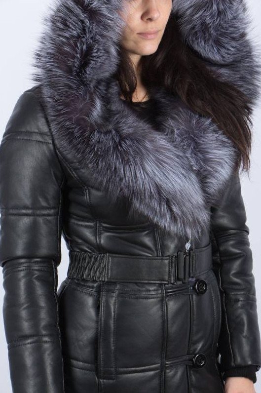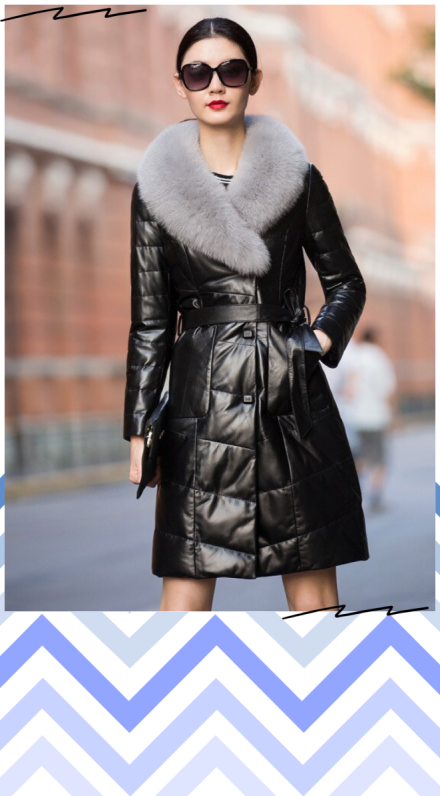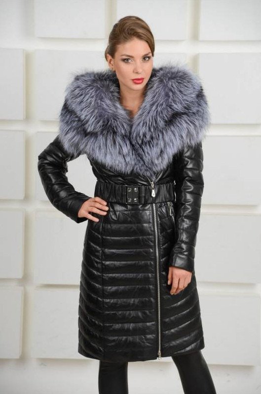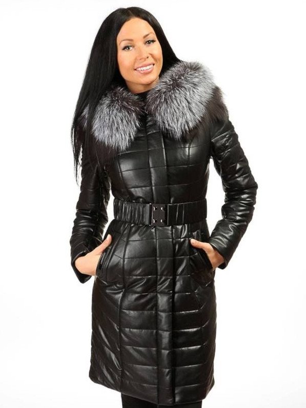 Кожаное пальто с мехом женское.