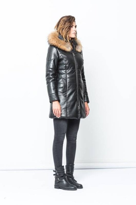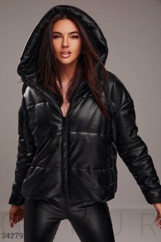 Кожаный пуховик дамский.