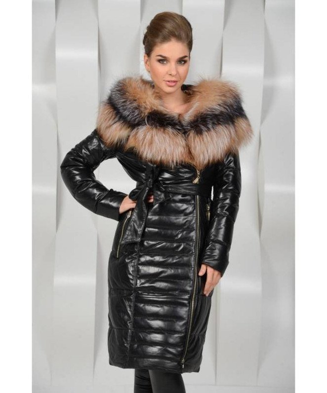 Кожаный пуховик дамский с мехом.