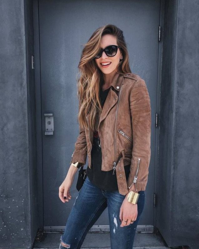 Девушка в кожаной куртке.