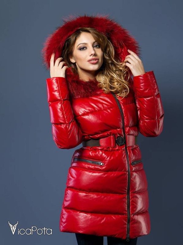 Очень красный пуховик дамский.