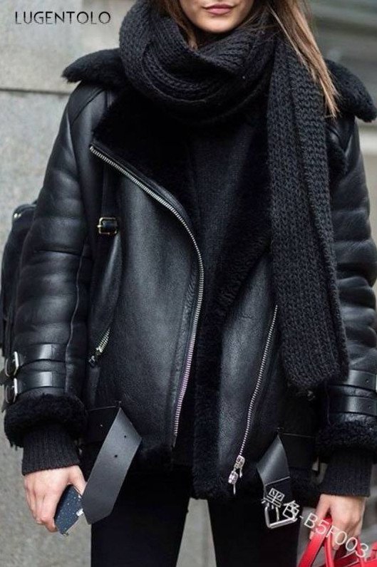 Зимняя кожаная куртка для полных красивых женщин.