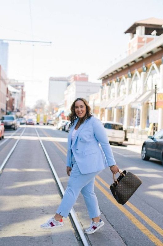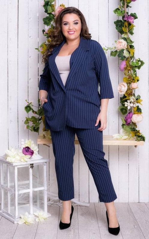 Брючный костюмчик для полных красивых женщин низкого роста.