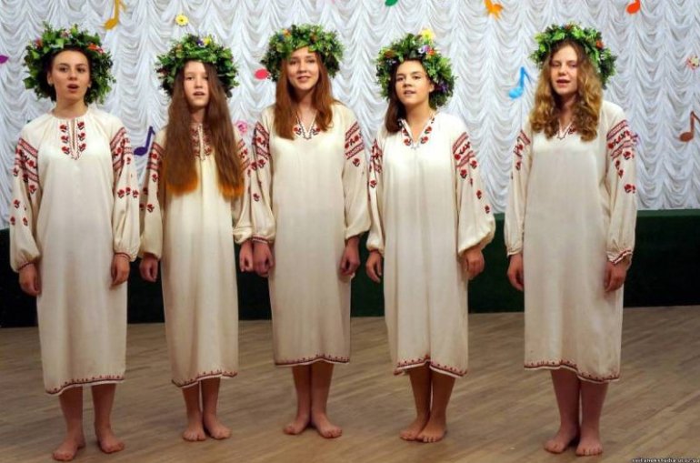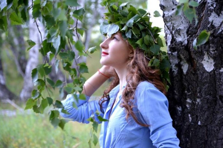 Троица хоровод вокруг березы.