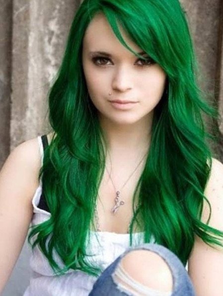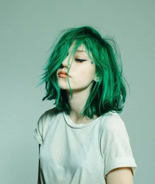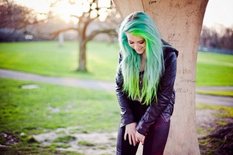 Девушка с зелеными волосами.