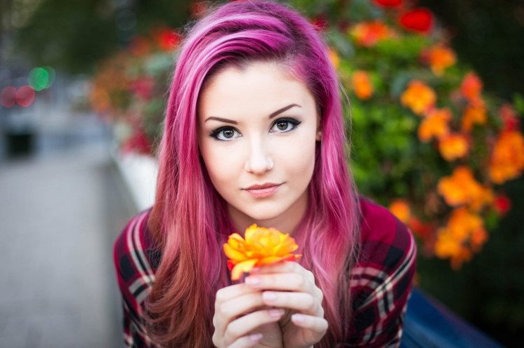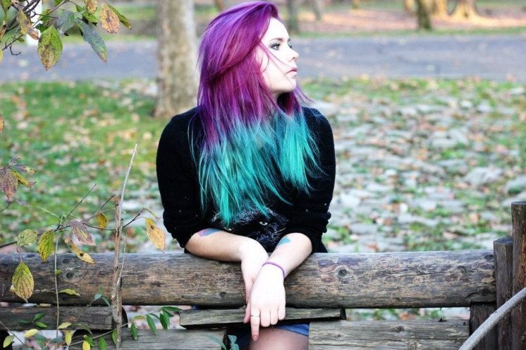 Девушка с колоритными волосами.