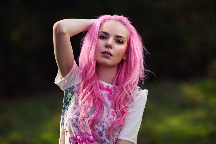 Вика Блисс с розовыми волосами.