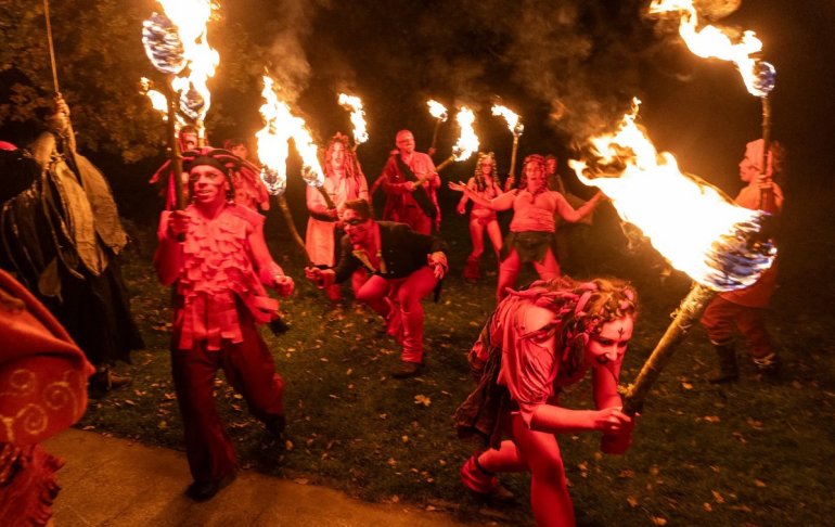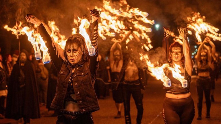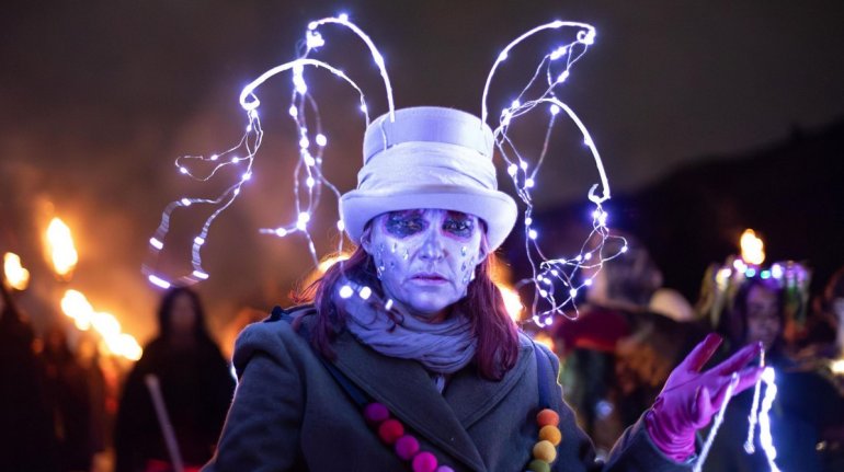 Тысячи людей собрались в парке Холируд в Эдинбурге, чтобы отпраздновать древний праздник огня Самайн. Ежегодная кельтская традиция празднует битву между королями лета и зимы.
