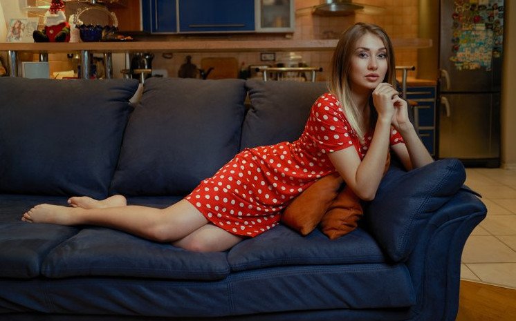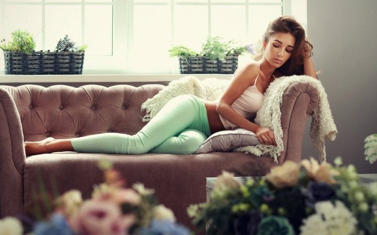 Красивая девушка на диване.