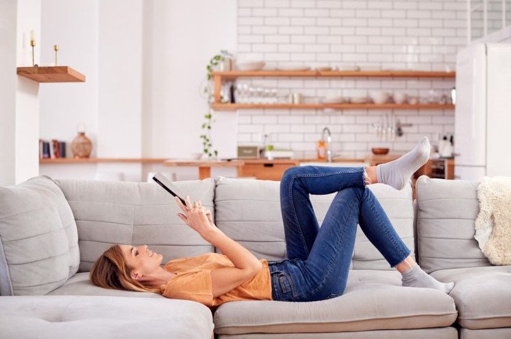 Лежа на диване принимать гостей.
