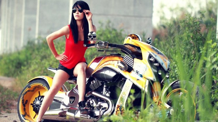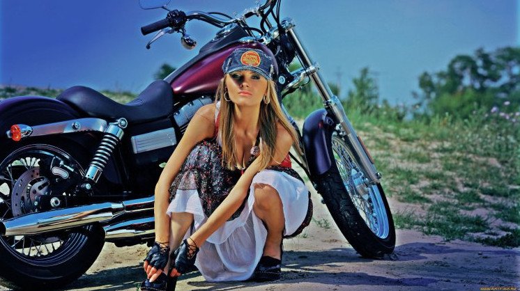 Милые девушки и байки HD.