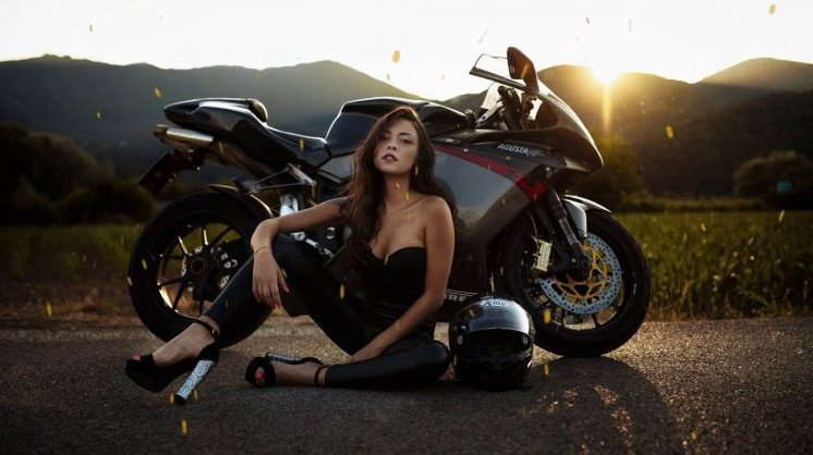 Эротика с брюнеткой на байке.