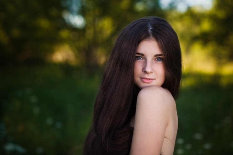 Шатенка с длинющими волосами.