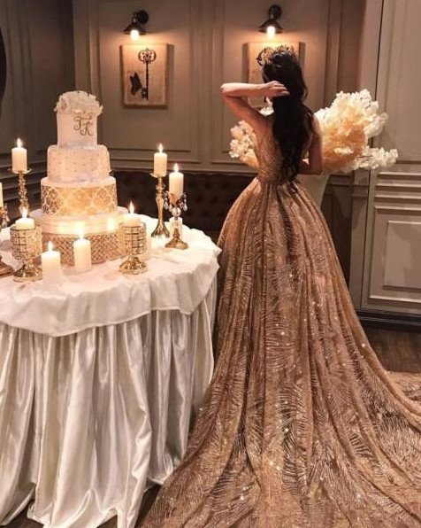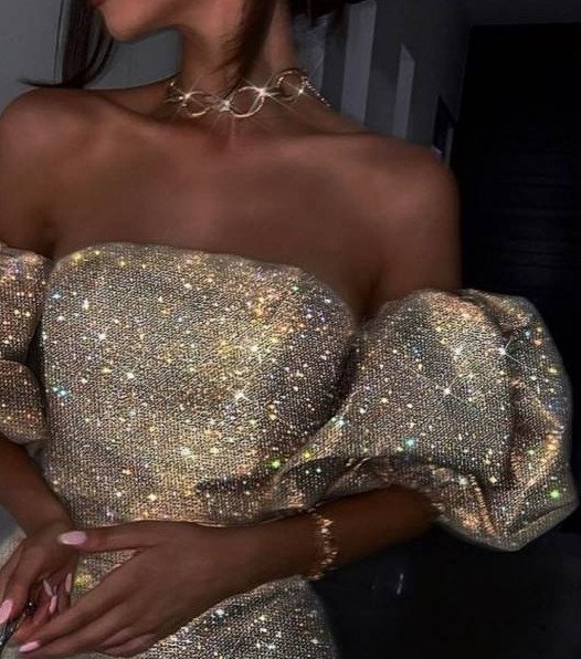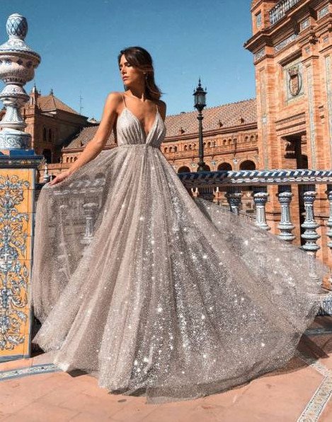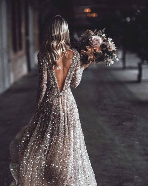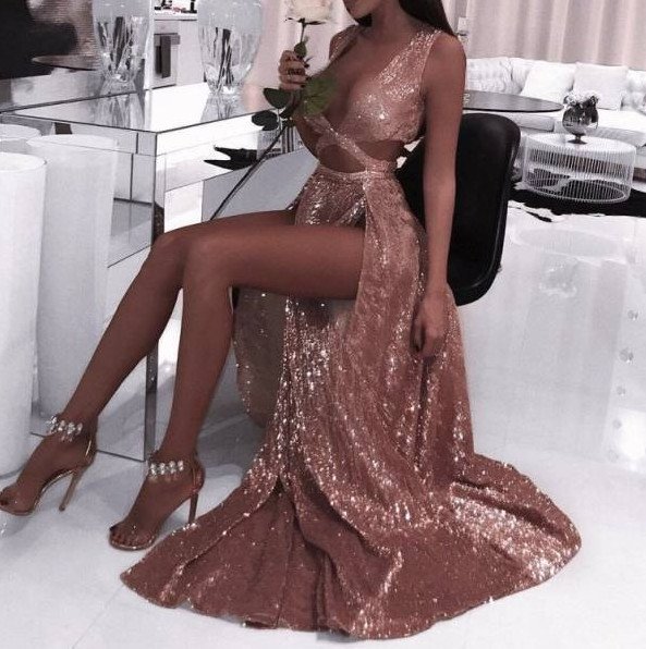 Девушка в прекрасное платье с блестками.