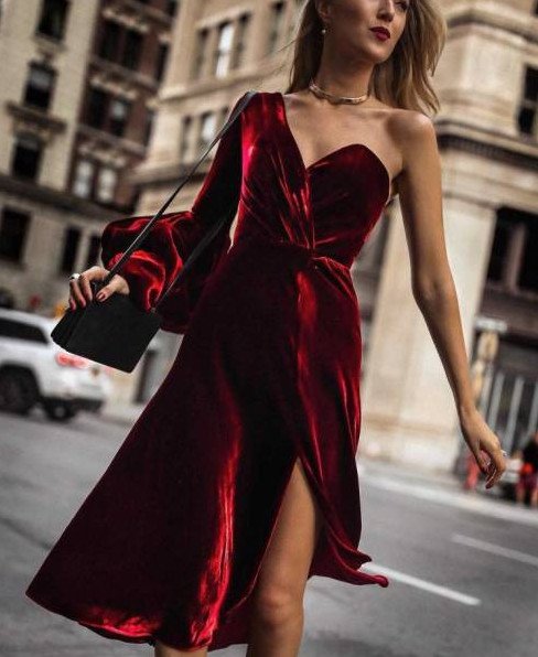 Красное бархатное прекрасное платье.