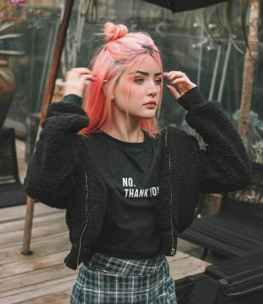 Девушка с розовыми волосами сохры.