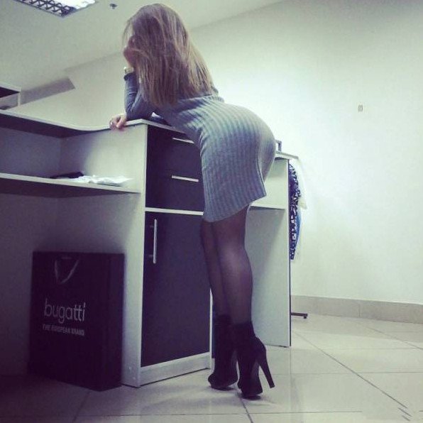 Девушка наклонилась в кабинете.