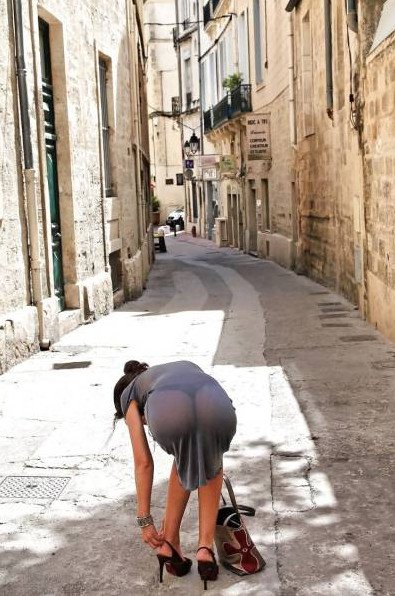 Девушка в короткой юбке наклонилась.