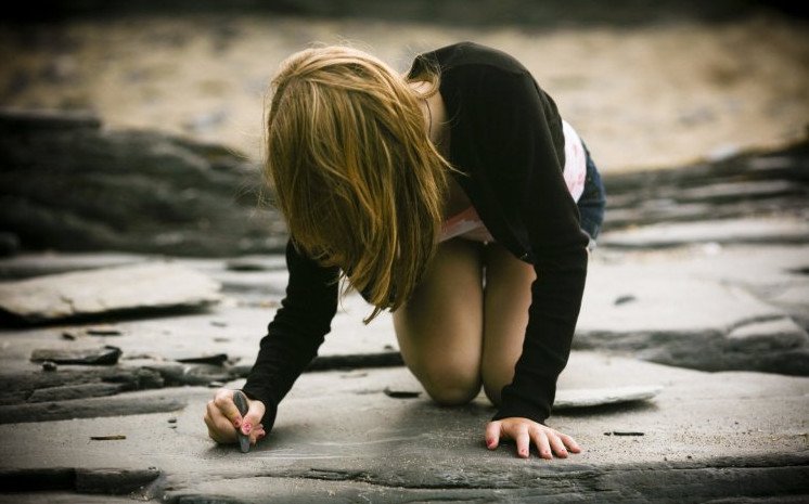 Девушка на коленях.
