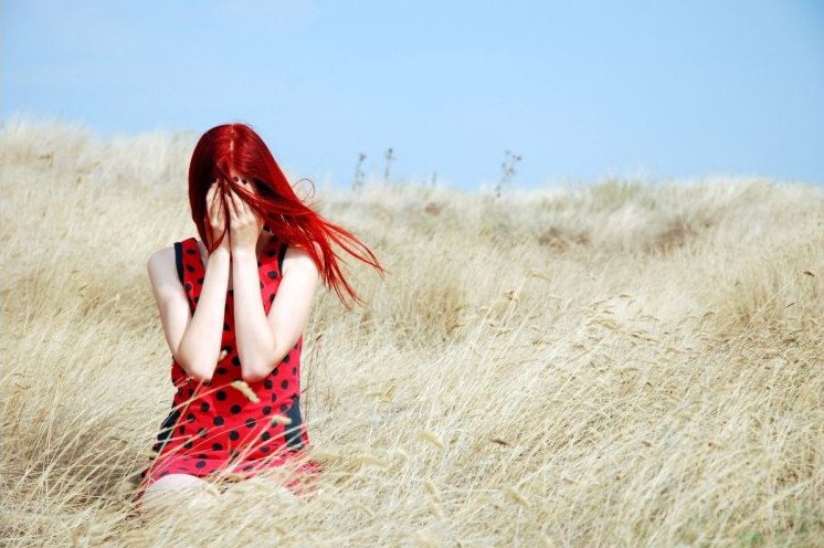 Милые девушки с красными волосами на природе.