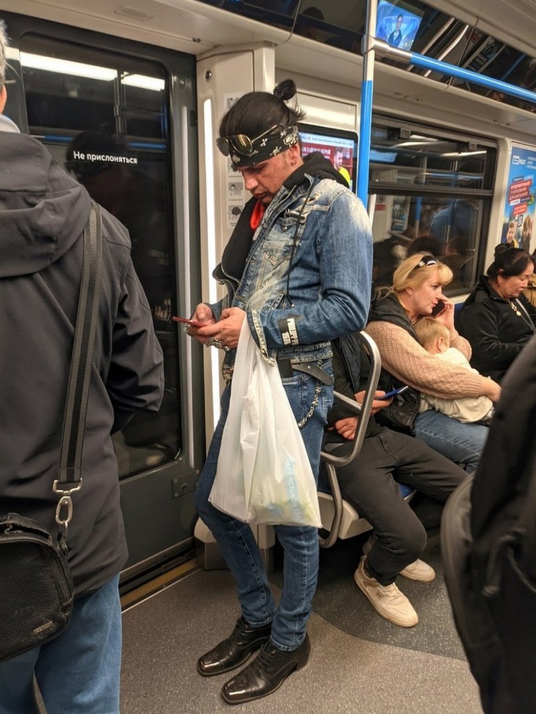 Модники из российского метрополитена 07.11.23 Приколы 7-11-2023, 11:11 141 Еще одна подборка фотографий со странными, забавными и модными персонажами, которых можно встретить в российском метро.