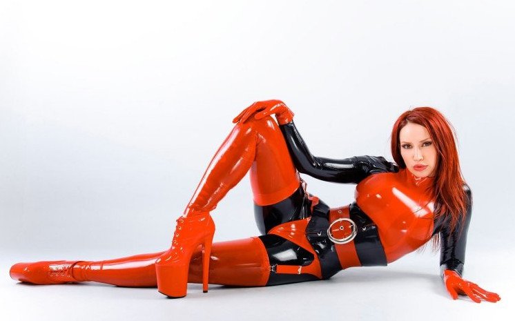 Эротика с брюнеткой в кожаном прекрасное платье.