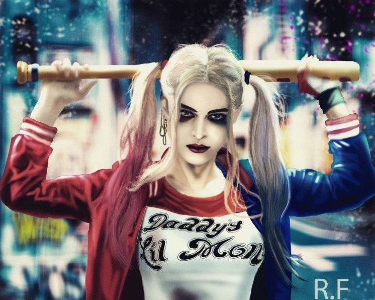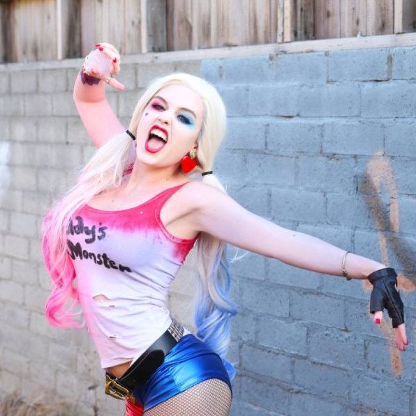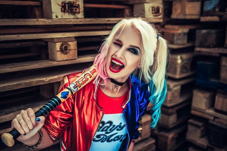 Сумасшедшая девушка голубыми волосами она злодейка.