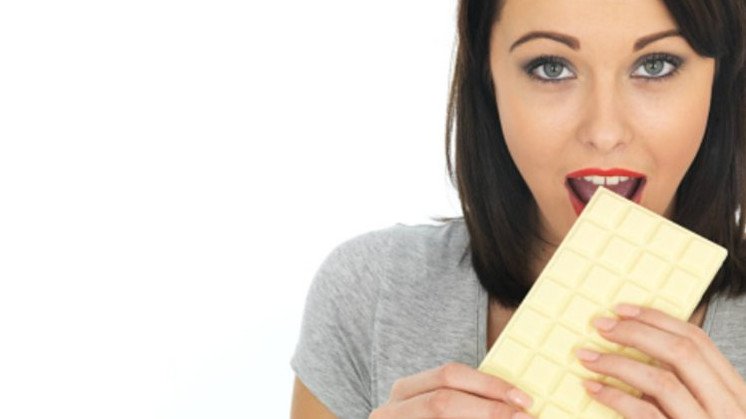 Красивая девушка с белым шоколадом.