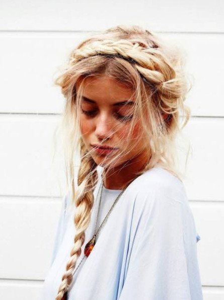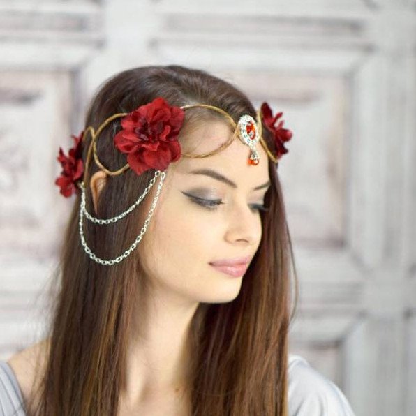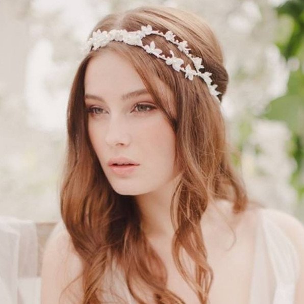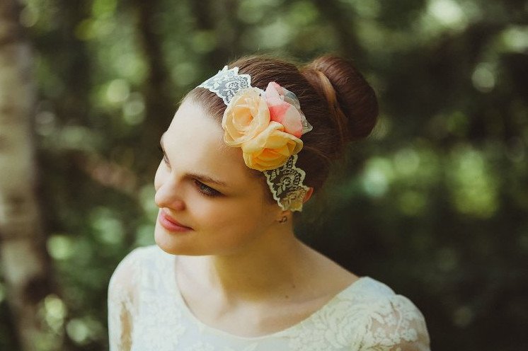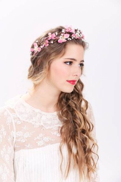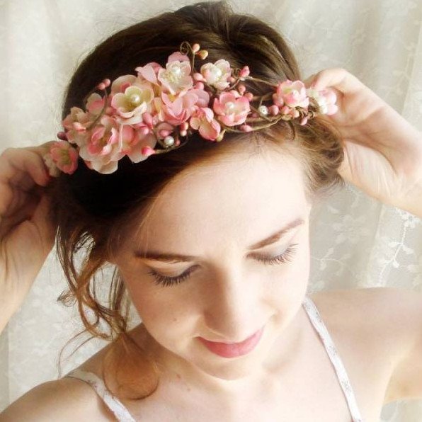 Прическа с ободком из цветов.