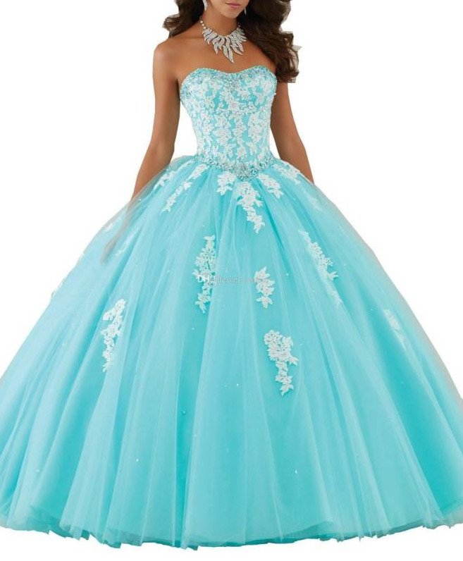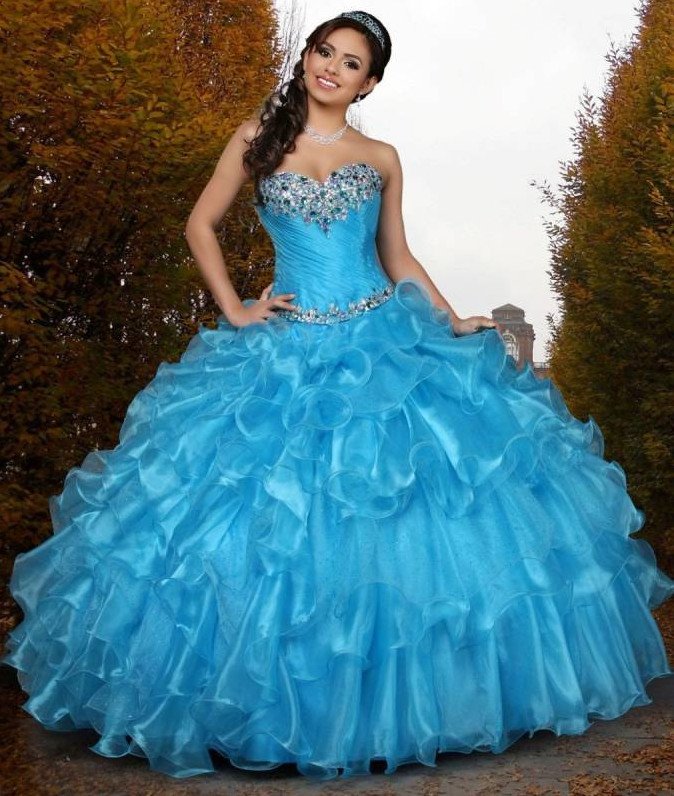 Голубое бальное платье для девушки.