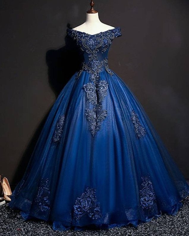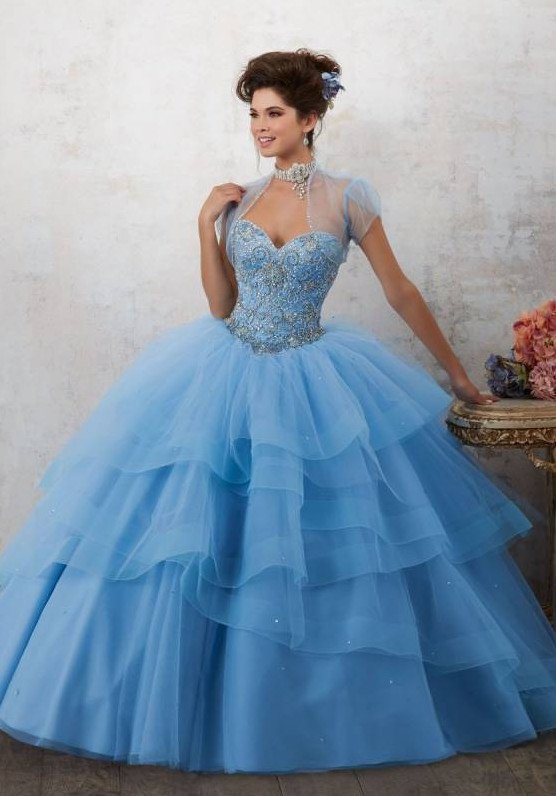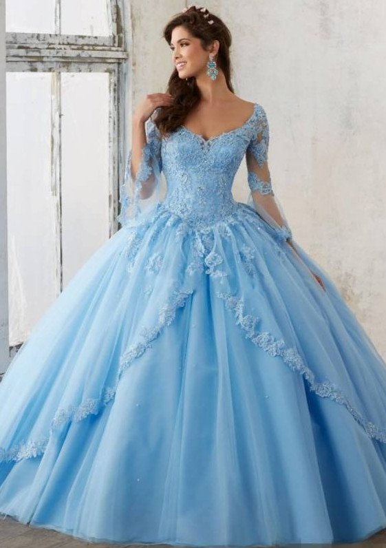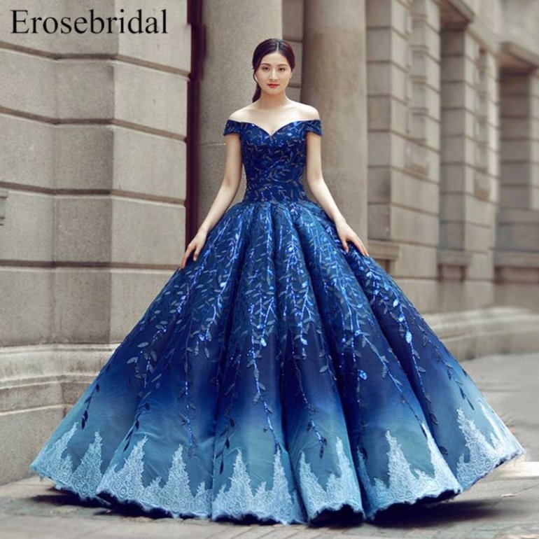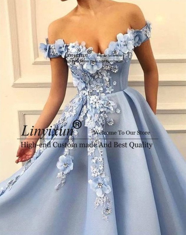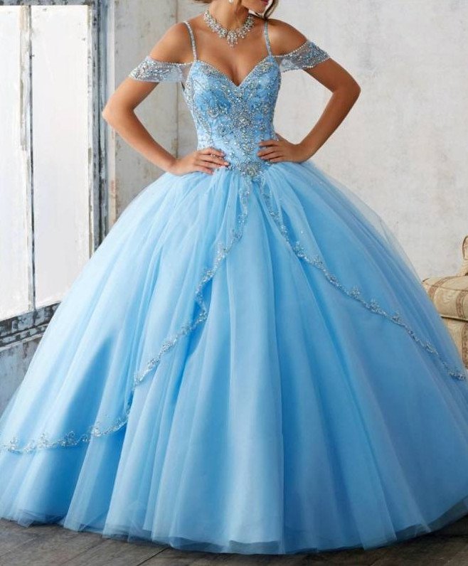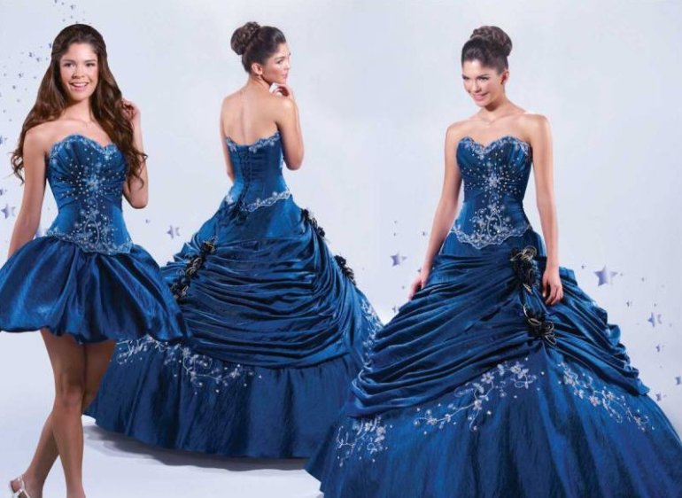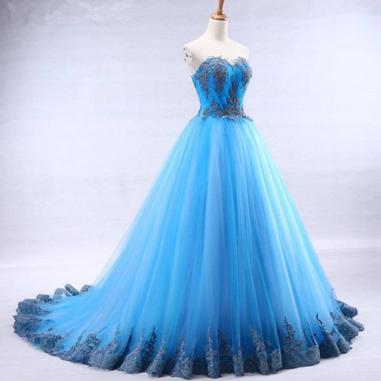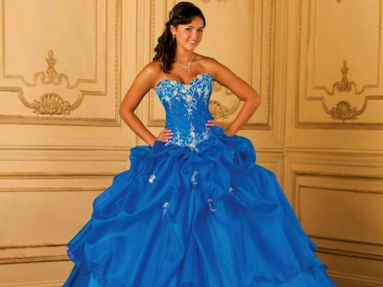 Голубое бальное платье.