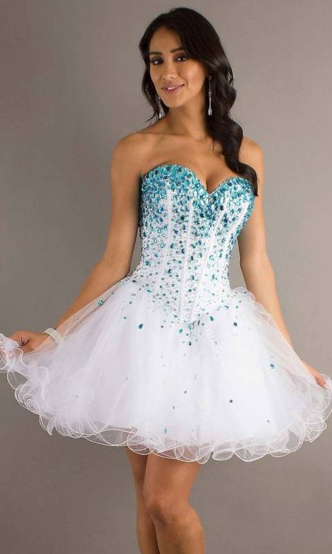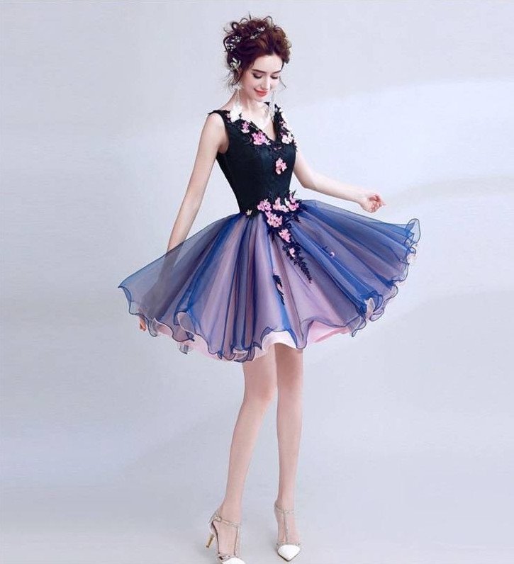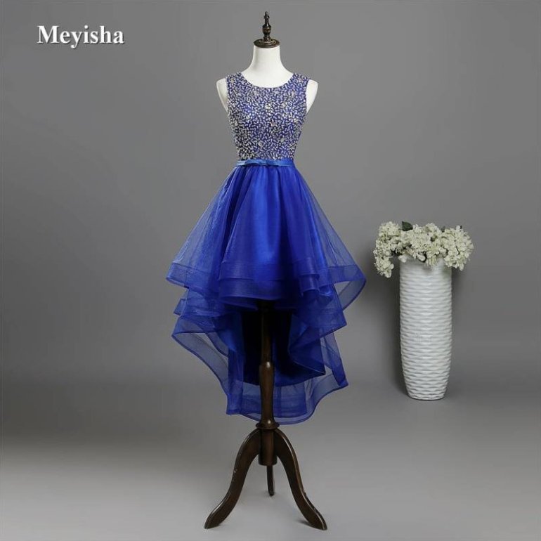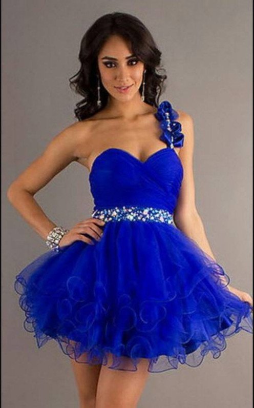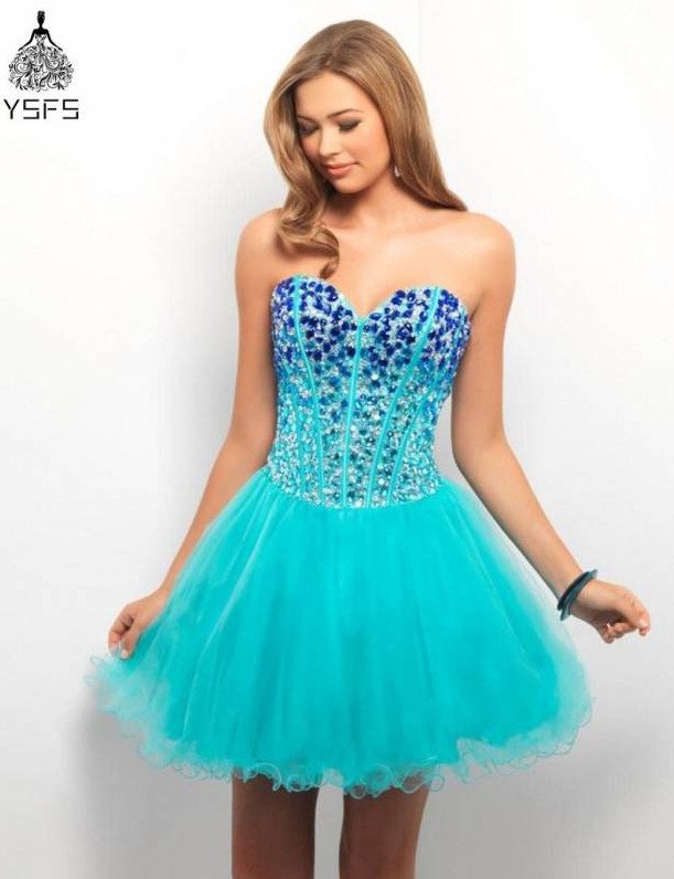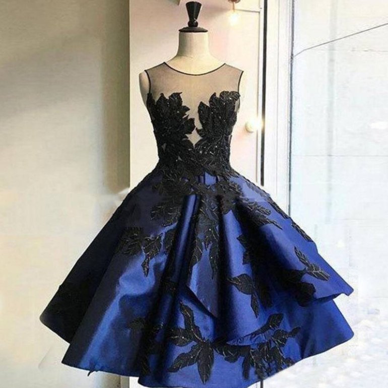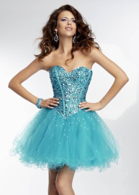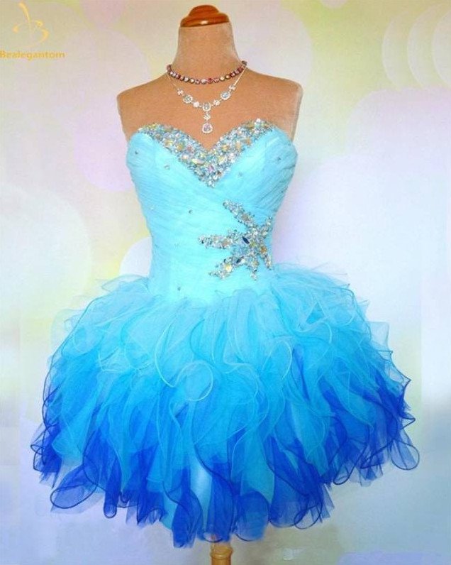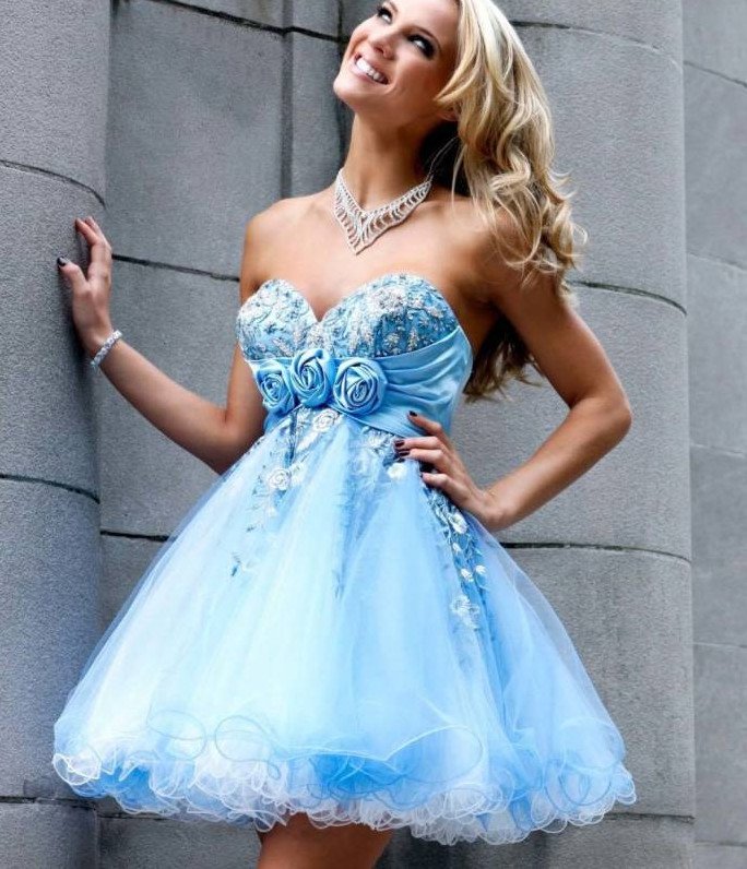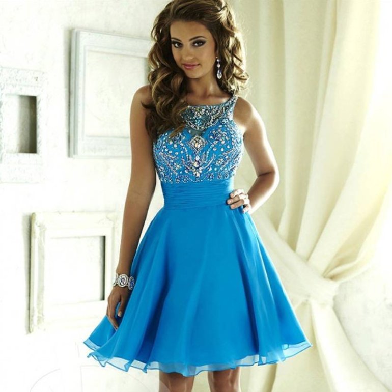 Голубое платье на выпускной короткое.