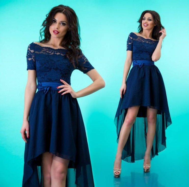 Голубое вечернее платье короткое.