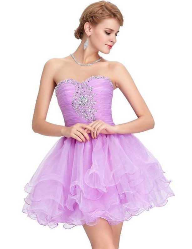 Сиреневое платье короткое.