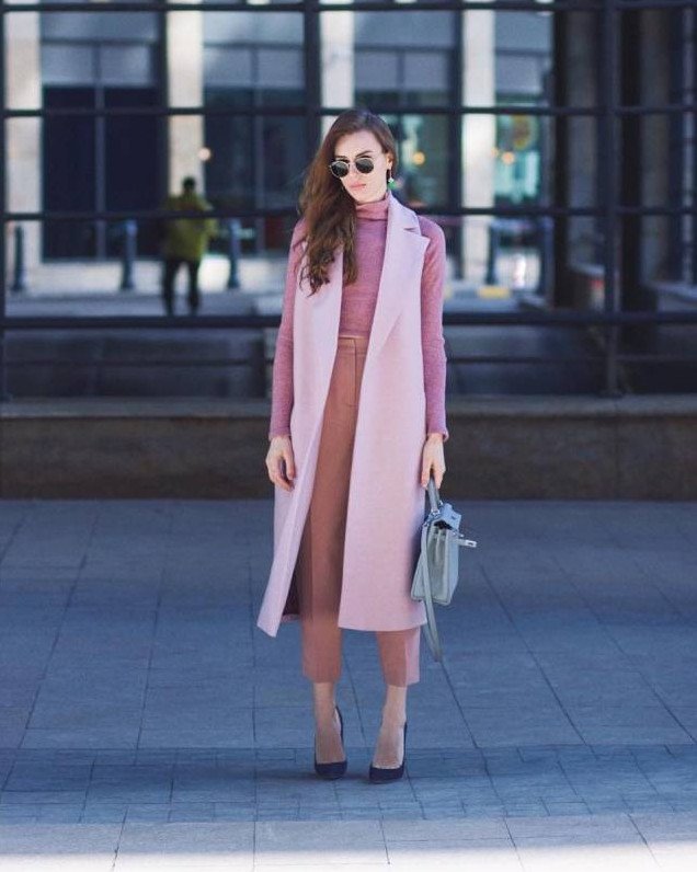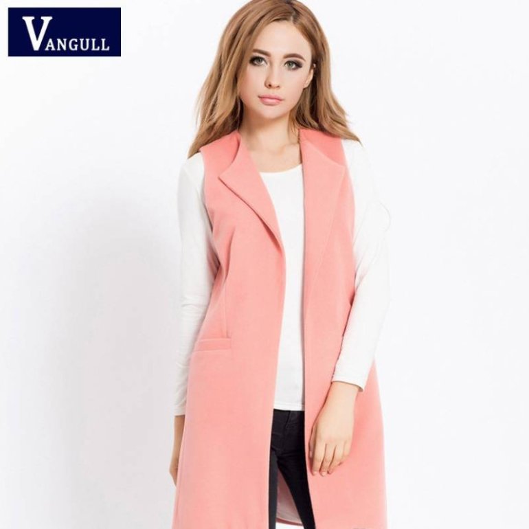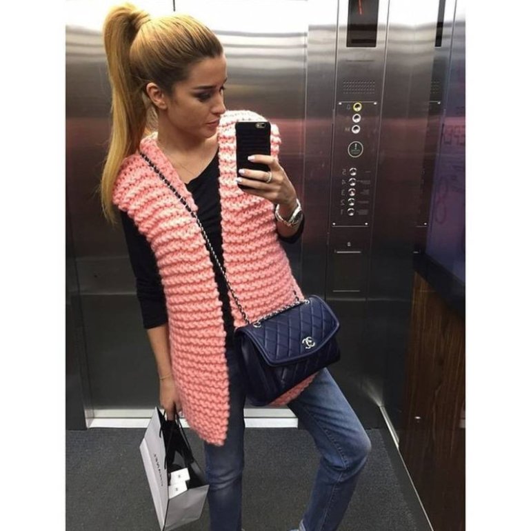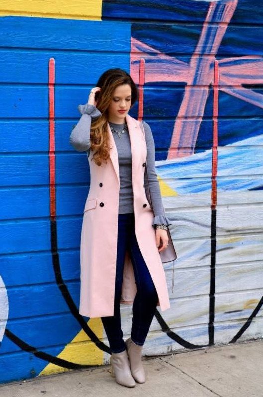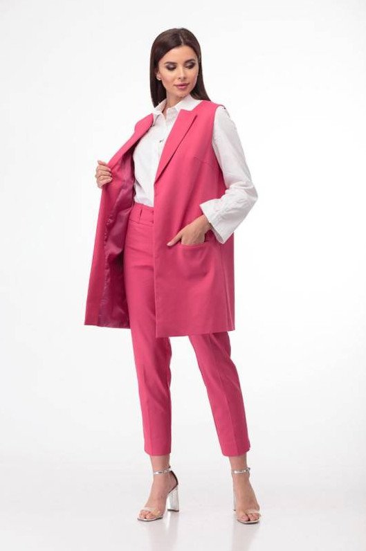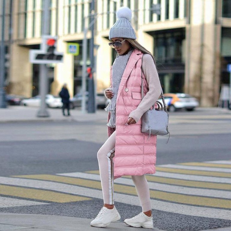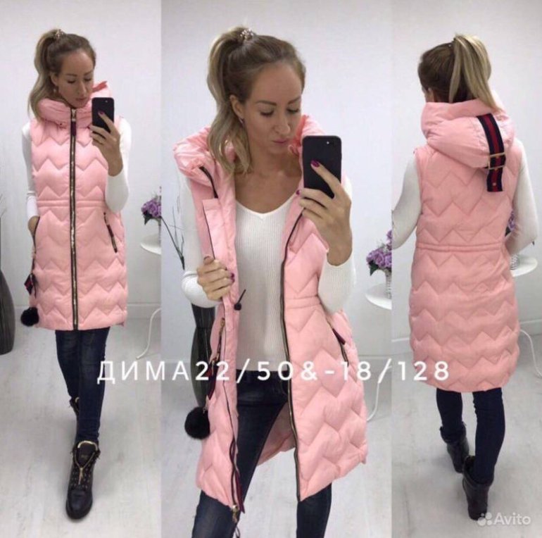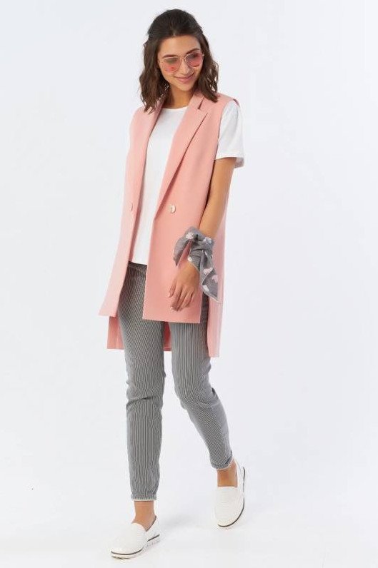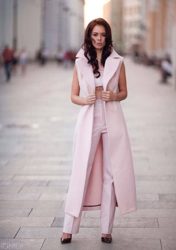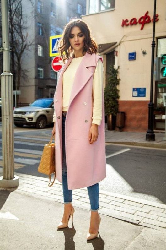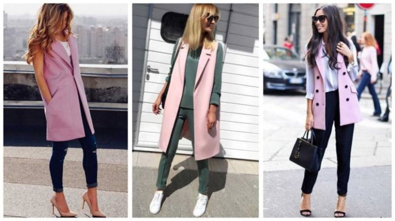 Образы с розовой длинноватой жилеткой.