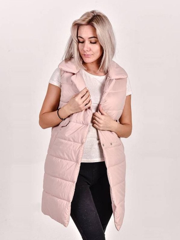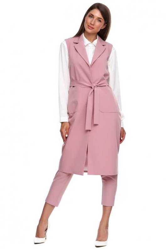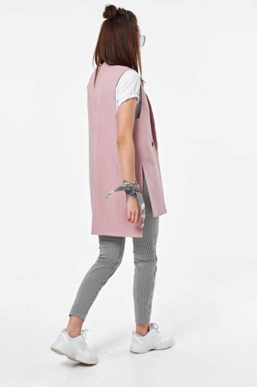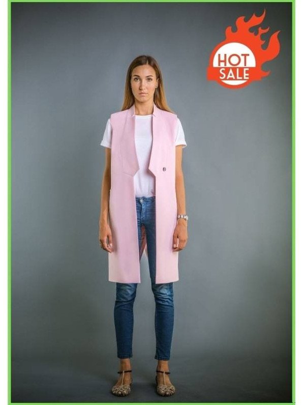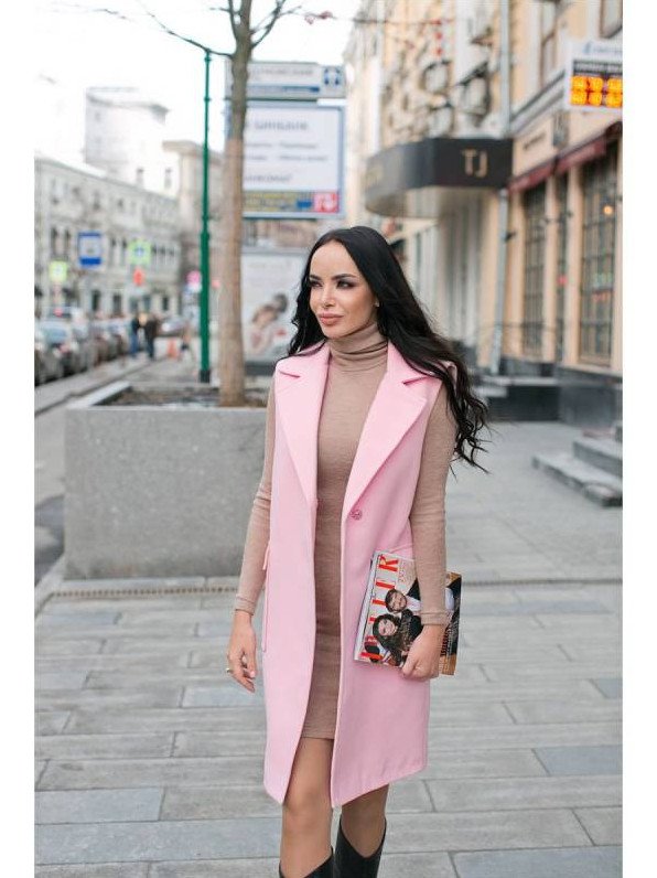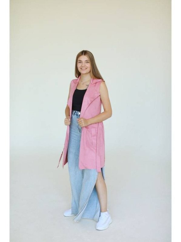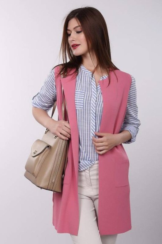 Розовый удлиненный жилет.
