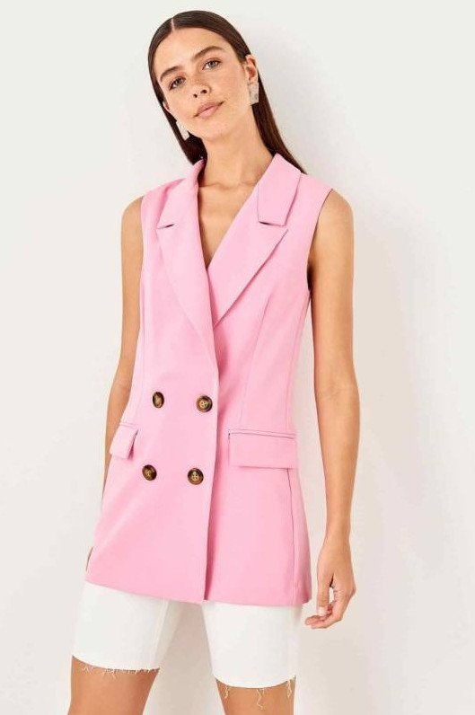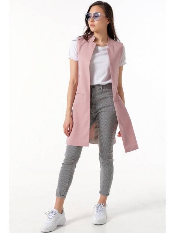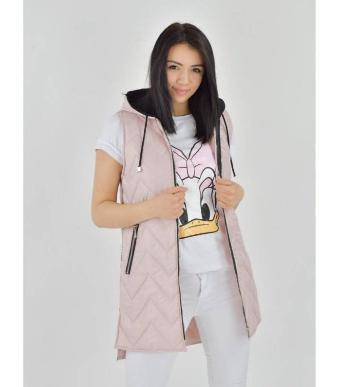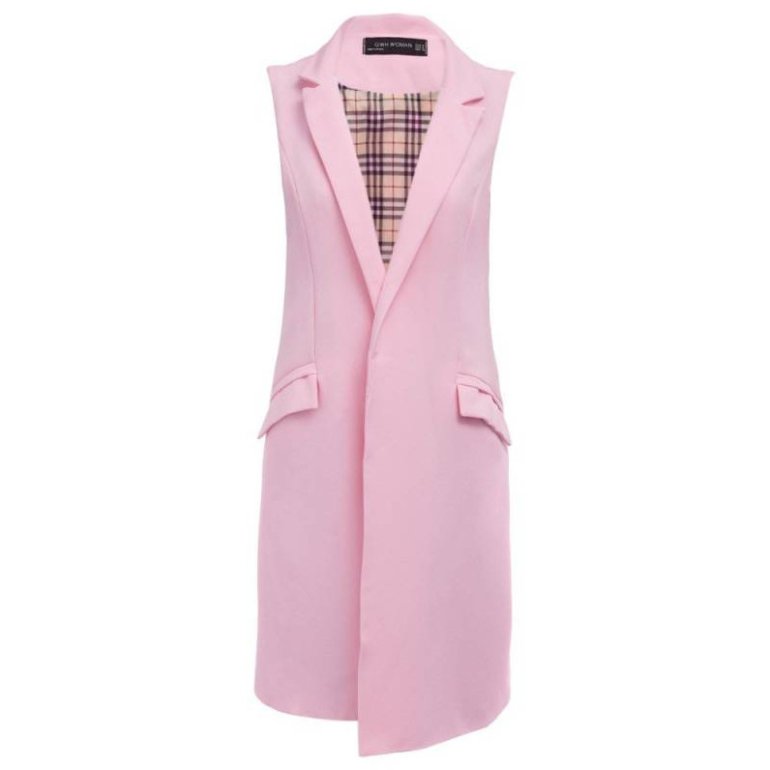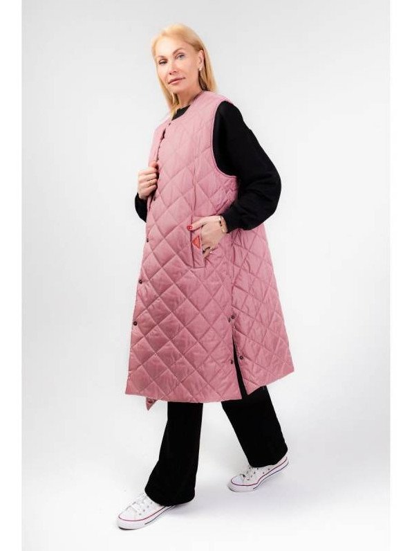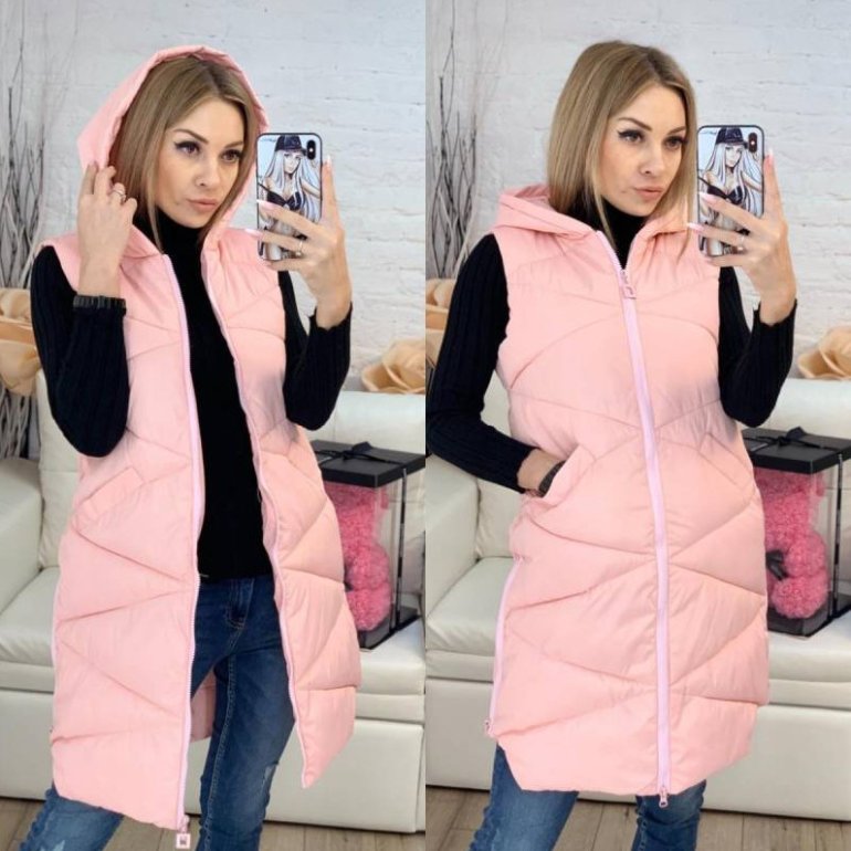 Розовый удлиненный жилет.