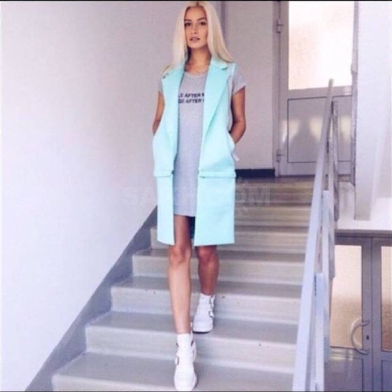 Жилетка пальто голубого цвета.