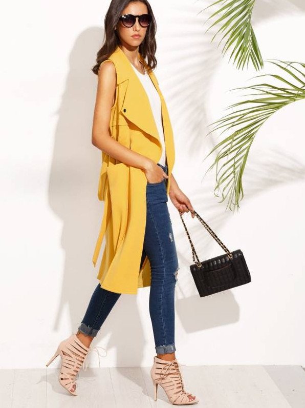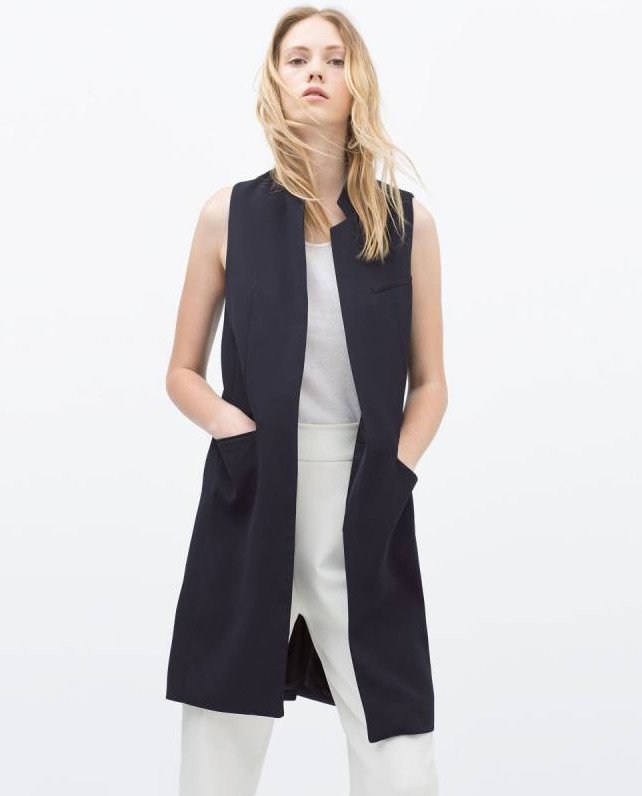 Удлиненный пиджак без рукавов.