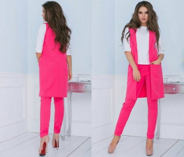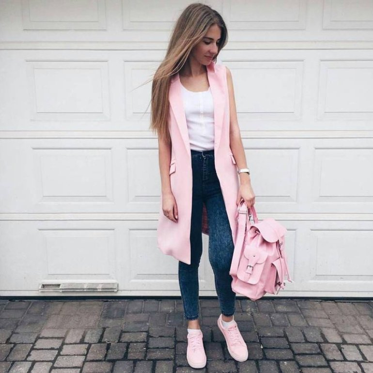 Образ с розовой жилеткой.