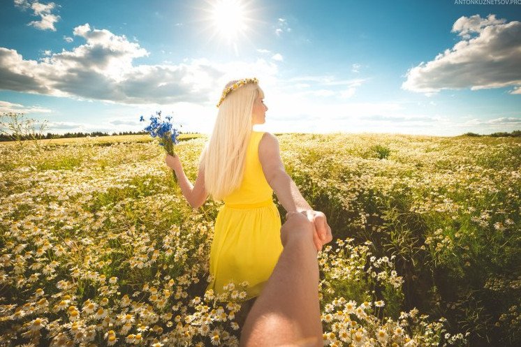 Светловолосая девушка в поле.