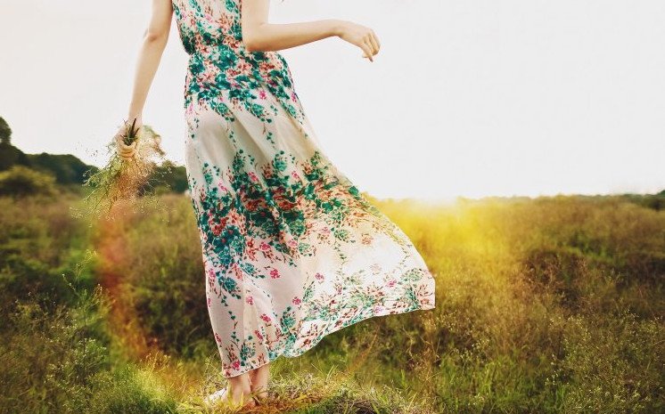 Девушка в прекрасное платье в летнюю пору.