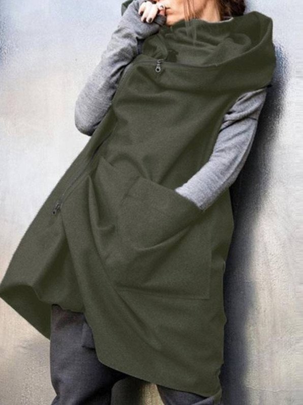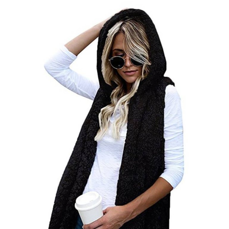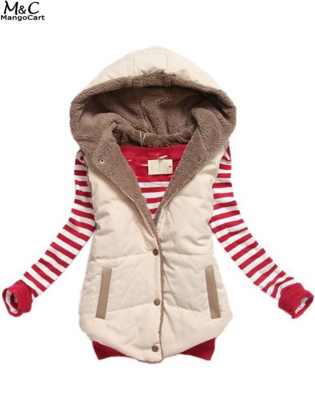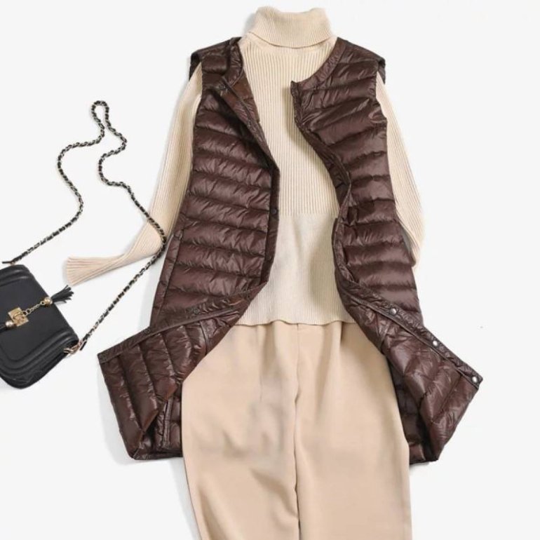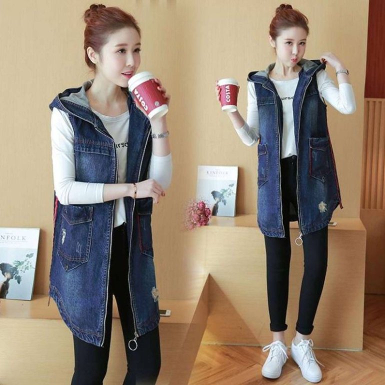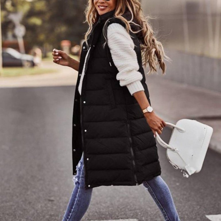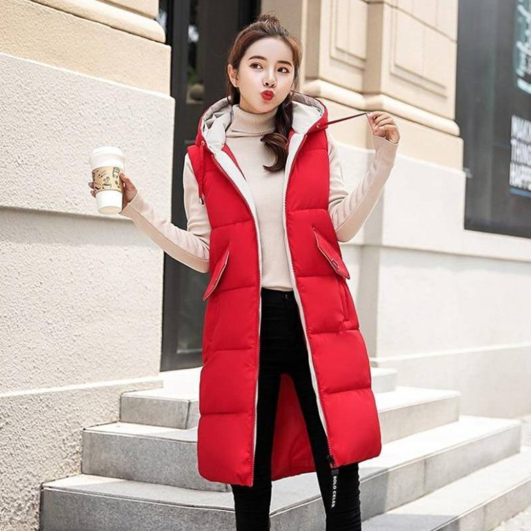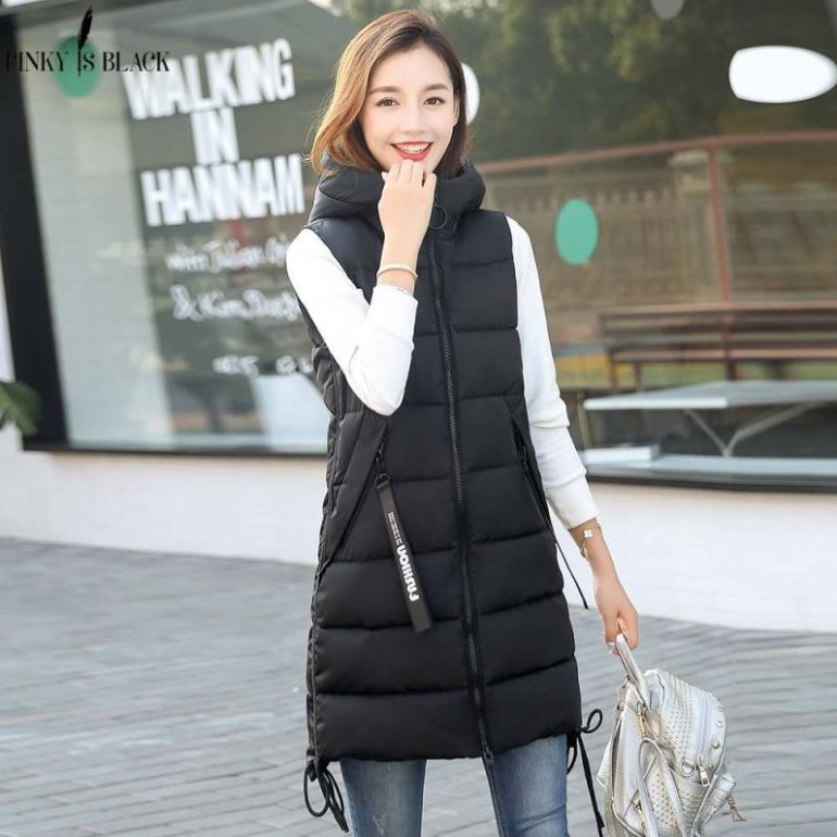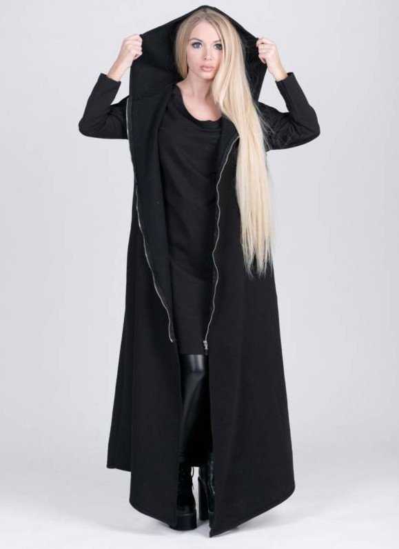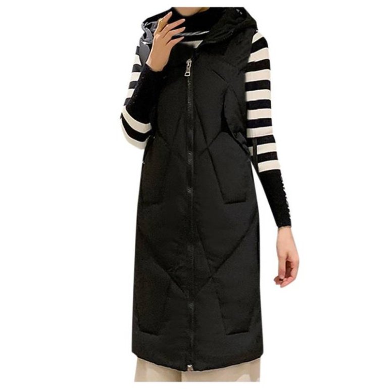 Двусторонний жилет длиннющий с капюшоном дамский.