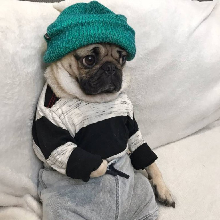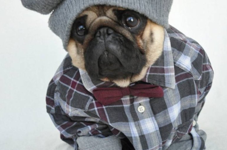 Мопс в одежде.