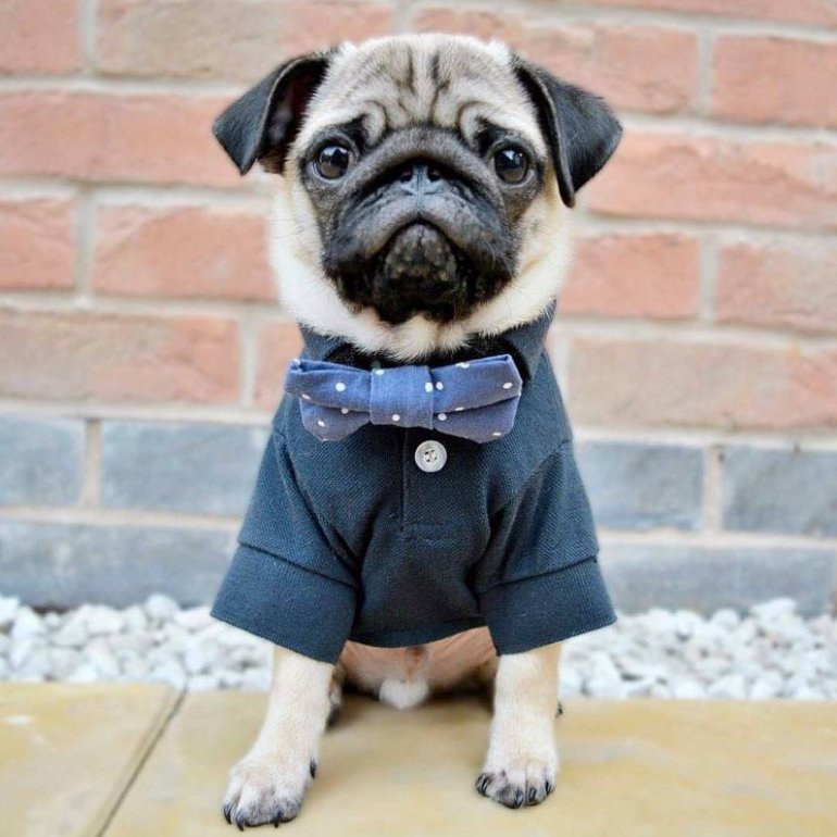 Мопс в костюмчике.